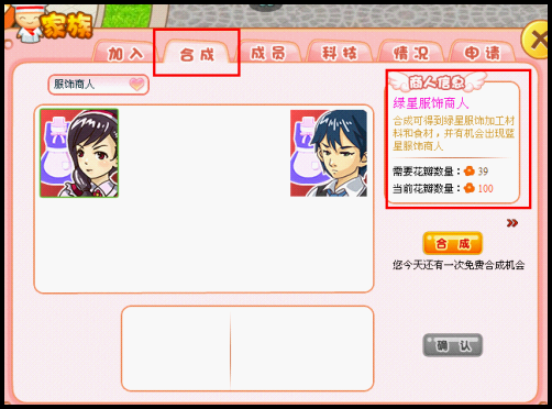 帮助越多的人,得到越多的“花”,从而在家族合成中,更能惊喜获得各类极品服饰与装潢喔!