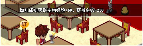9.捣乱成功会获得宠物经验+60,失败获得宠物经验+30,并根据自身所学天赋等级获得相应金钱(饭店)与精华(厨房);