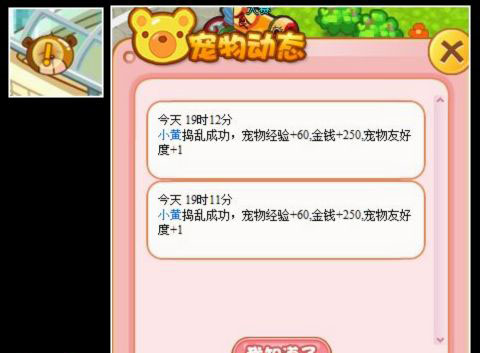第三步:查看宠物捣乱的结果。(在游戏画面左侧的宠物动态提示中,也能进行查看)