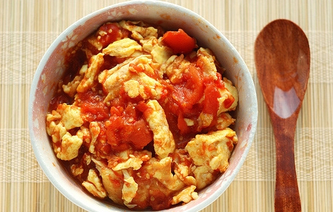 2、鸡蛋还是炒,热锅,放油不能太少,也不能太多,放打匀的蛋,一定拿铲子快搅,没等成块,还有液体时,出锅。[美食中国]