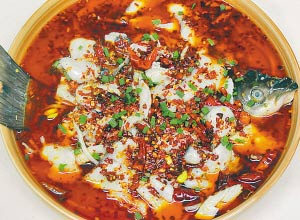 7、将麻辣油倒入鱼片上,然后放入香菜即可