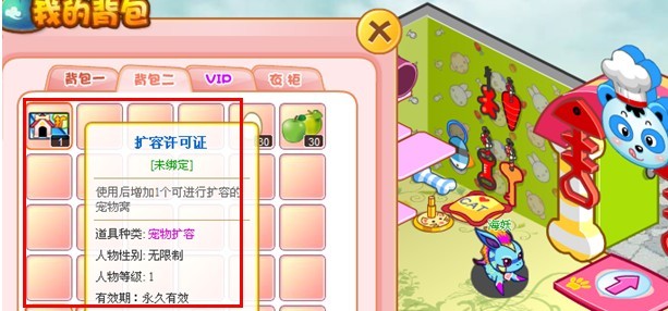 在人物背包,双击使用“扩容许可证”后,在“宠物屋”内点击右侧“我的宠物”面板中的 “宠物格”进行扩容,即可完成开启,增加1个宠物格!