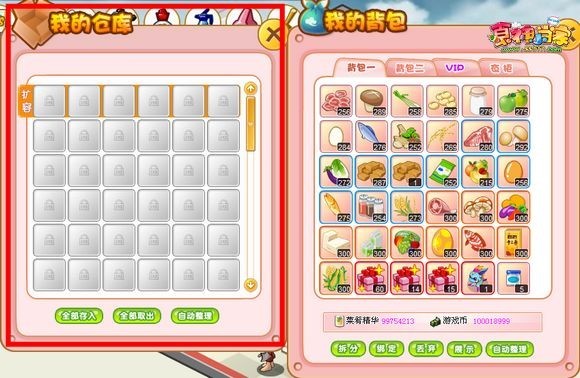b. 方便与人物背包进行互相的物品置放取出,有效进行各类游戏物品道具的整理;