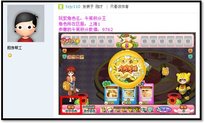 比菜肴、比眼力、比速度,首届厨神大赛即将完美落幕,各区之间也涌现出许多斗菜好手,而究竟谁才是小当家全服范围内的单场比赛积分之王?秀出来,震撼我们的眼球吧!