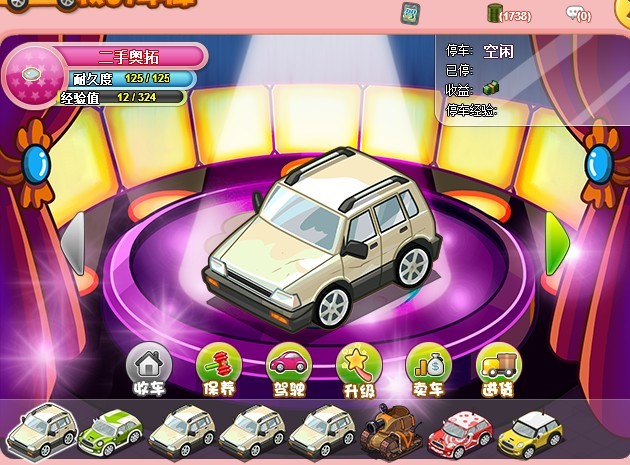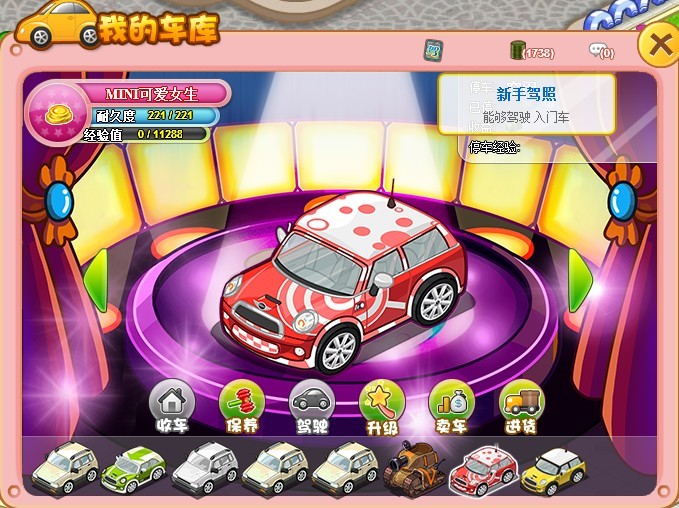 第一步:打开车库,查看已拥有的“驾照”(系统初始给予新手驾照,玩家默认可以驾驶入门车“奥拓”)