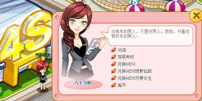 第二步:前往“世博园”与NPC“汽车导购”对话,在“4S店”中购买“加油卡”