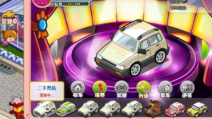 第四步:打开“车库”,点选“奥拓”(新手初始都可驾驶),再点击驾驶。