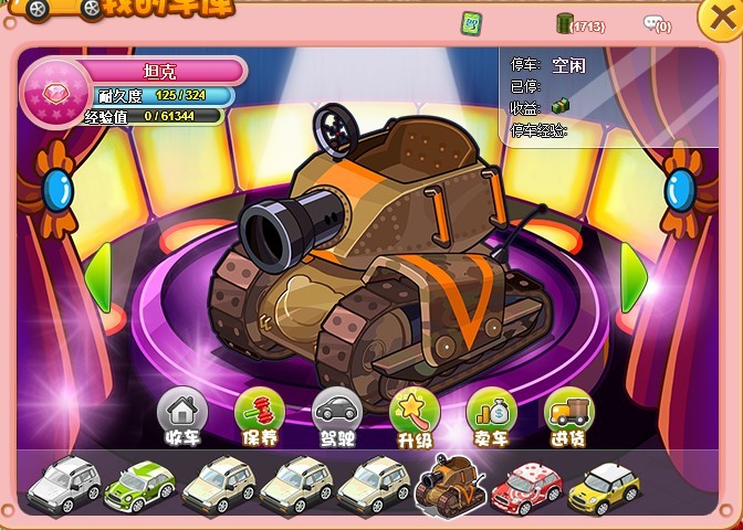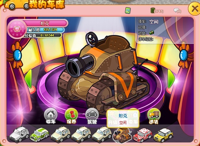2) 车库中鼠标放置于正在驾驶车辆图标上,会有悬浮信息提示车辆“驾驶中”状态。