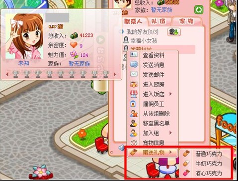 通过“赠送”对方“巧克力”,快速而大幅的提升彼此的亲密度(如下图所示)。