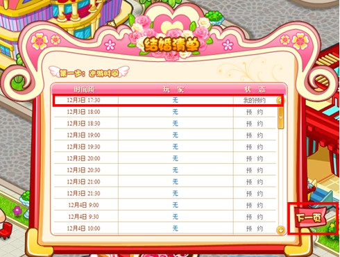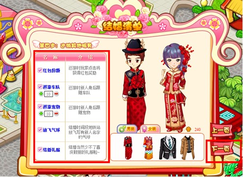 第二步:在“结婚清单”中,选定“巡游时间”,点击“下一页”。