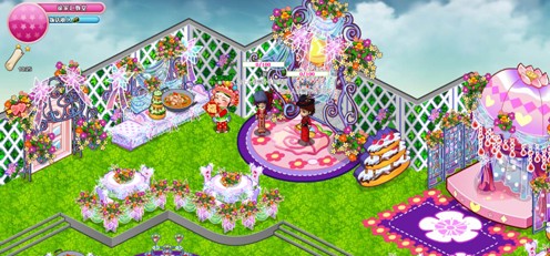 第四步:参与婚宴的宾客可以点击两位新人,待新人头上的酒量槽满后,便会在婚宴场所内分发喜糖。
