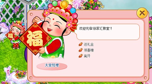 第二步:在“婚宴场景”的NPC大堂经理处,参与婚宴的宾客玩家可以“送礼金”或“领喜糖”