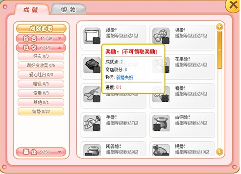 3.结婚等级还对应有“成就”获得,部分“结婚成就”给予特定的称号奖励。
