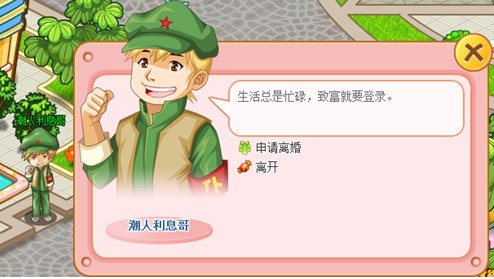 在“世博园”NPC“潮人利息哥”处,可“申请离婚”。