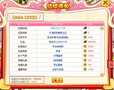 2、 婚礼花费贝贝总数依照第六步:清单列表内的贝贝总数计算;