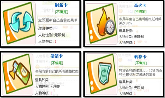 【刷新卡】、【高火卡】、【清洁卡】、【转移卡】
