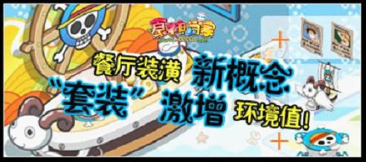 目前已知的,《食神小当家》内共存在19套形式各异,风格迥然的套装装潢。其中不乏早已风靡,日益流行的动漫主题套装装潢、节日主题套装装潢,已经浓情烂漫的结婚主题套装装潢等。此中经典,犹令人回味神往,而今平添“套装装潢”可激增餐厅环境值的功效,势必更将受到火热追捧。