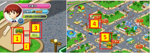 1、点击游戏主界面左侧“PK”图标,系统将自动引导玩家至相应地图进行餐厅踢馆。