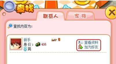 查询到该角色名的玩家,可查看该玩家的资料或是加为好友;