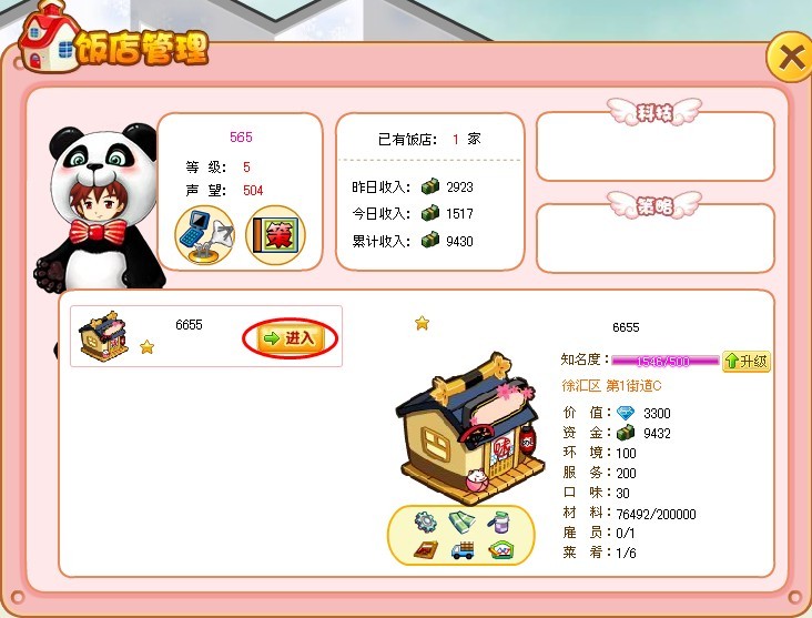 饭店上方按钮(仅在自己的饭店显示)功能依次为: