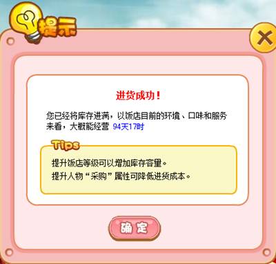 点击“材料进货”按钮,系统将自动进满最大数量货物,并显示可经营天数。