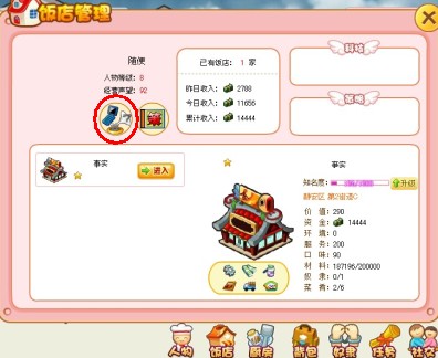 1,进入需要研发科技的饭店,在界面中点击“饭店科技”按钮,可以打开饭店科技界面;