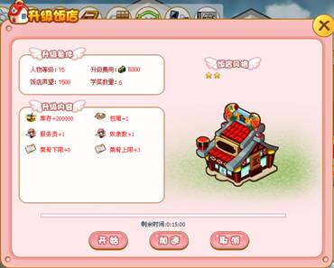 随着饭店的发展、更高的知名度、更高的客流,需要玩家对饭店进行升级,来扩大饭店的规模,以此获得更好的硬件支持与更广的发展空间。