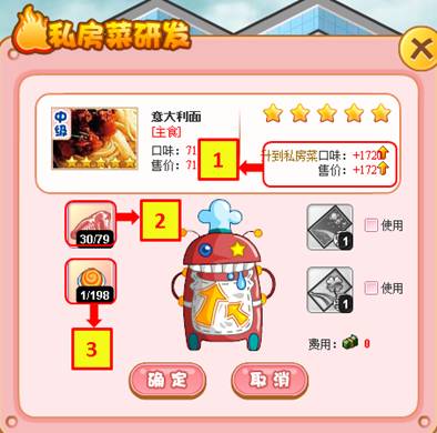 3、 升级私房菜所需要的珍惜道具