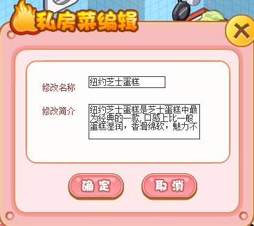 在“菜肴升星”界面点击私房菜就可编辑该菜肴的名称及简介