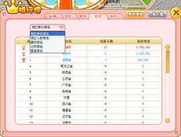 地区玩家总身价排行;