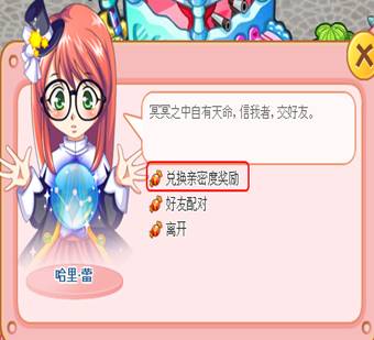 通过配对系统查询添加到亲密度高的好友后可组队伍到达NPC“哈里.雷”处兑换亲密度奖励