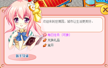 在世博园区NPC“新手导游”处接取每日任务;